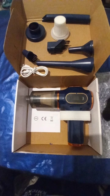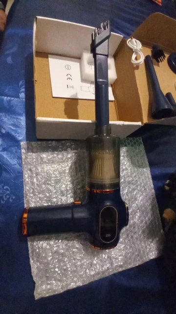 The vacuum cleaner is highly recommended. It is small and handheld. It has a monitor to see the remaining battery. It comes with a cable to charge it. It has the vacuum cleaner mode and the blower is on the back. With several accessories to incorporate. It makes an unpleasant noise for the pets. Use when the cats or dogs are not close...
